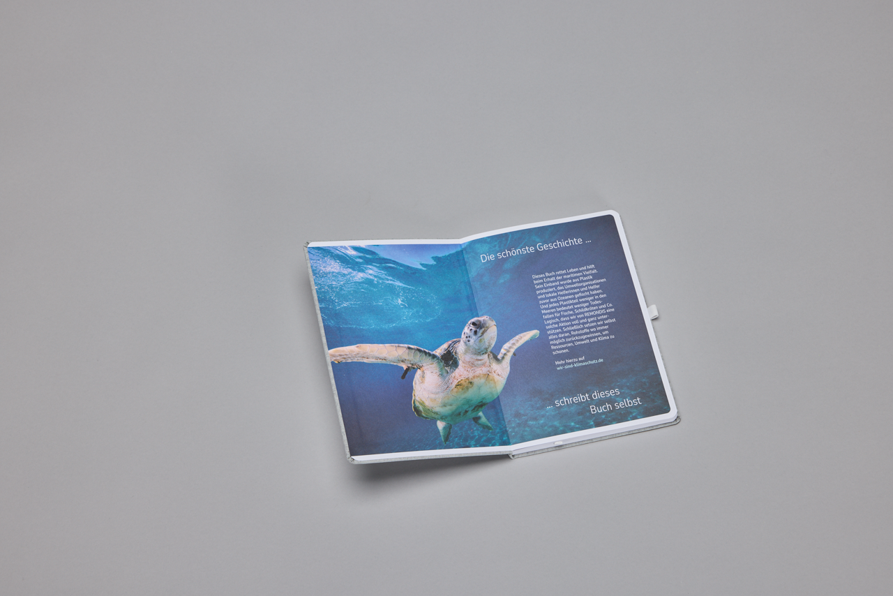 _ Besonderheit: Jeder Einband besteht aus aus dem Meer geborgenem Plastik – leistet aktiven Beitrag zum Umweltschutz